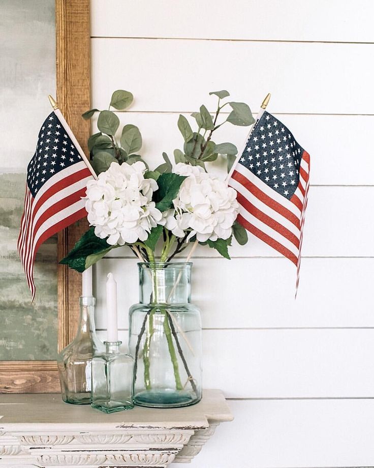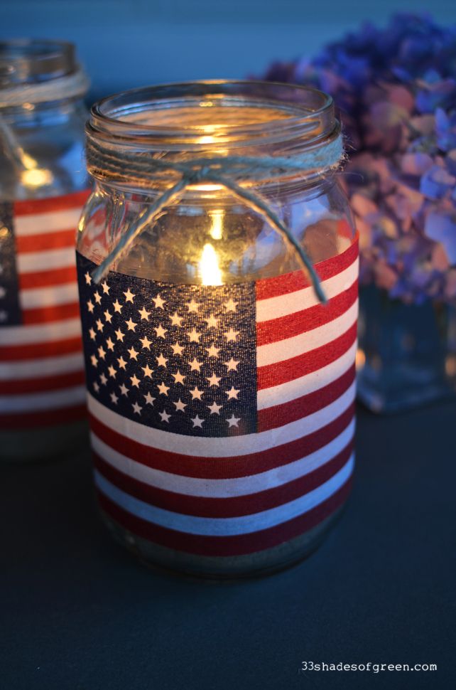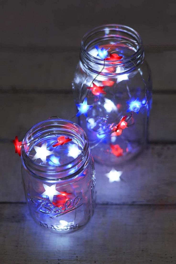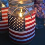 DIY some patriotic party decor on a budget with items you already own. Thrifted linens make great table runners. Painted mason jars double as vases, candle holders, or utensil cups. String lights in empty glass jars? Instant ambience and a minimalist 4th of July party guide dream.