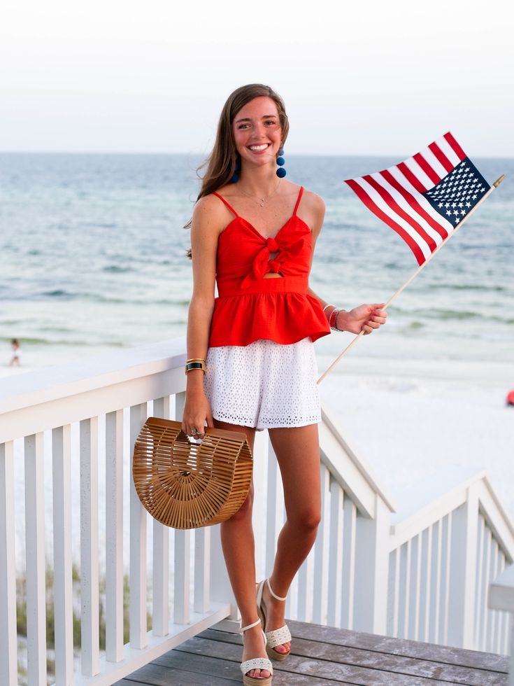 Keep your mani simple…red or navy polish with a star sticker is perfect. Match your vibe to your setup. Hosting a minimalist 4th of July party with soft tones and candles? Mirror that with earth-toned fits or a breezy sundress.