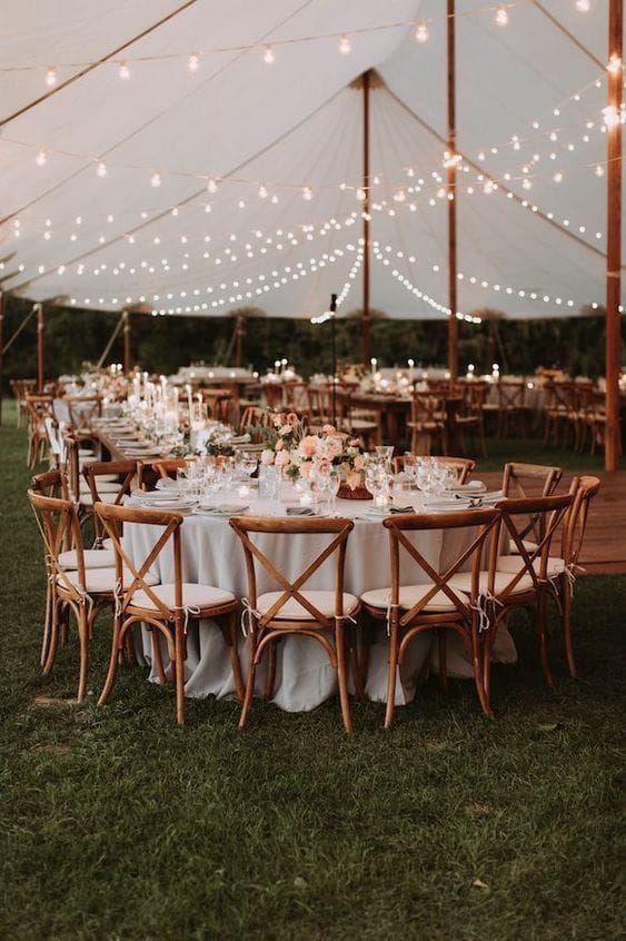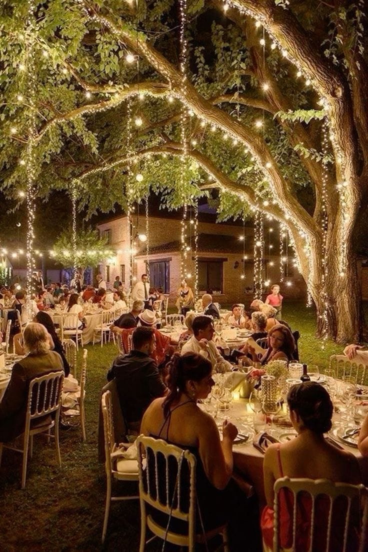 Your backyard might look magical in daylight, but without the right lighting, the evening can turn from cozy to creepy real quick. Plus, good lighting isn’t just functional, it sets the whole vibe for your wedding reception decorations.