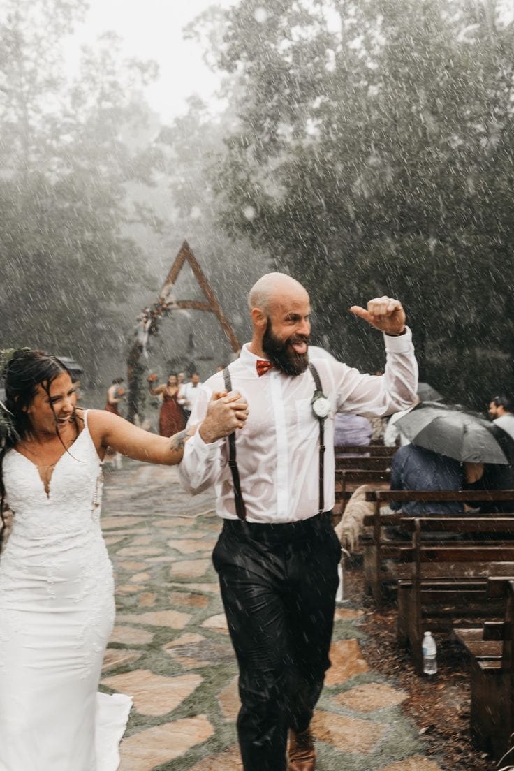 One minute it’s sunshine and birdsong, the next you’re handing out umbrellas and hoping your cousin’s silk jumpsuit survives the mudslide. Too many backyard brides (and grooms!) cross their fingers and hope for the best, thinking, “It’s summer, we’ll be fine.”