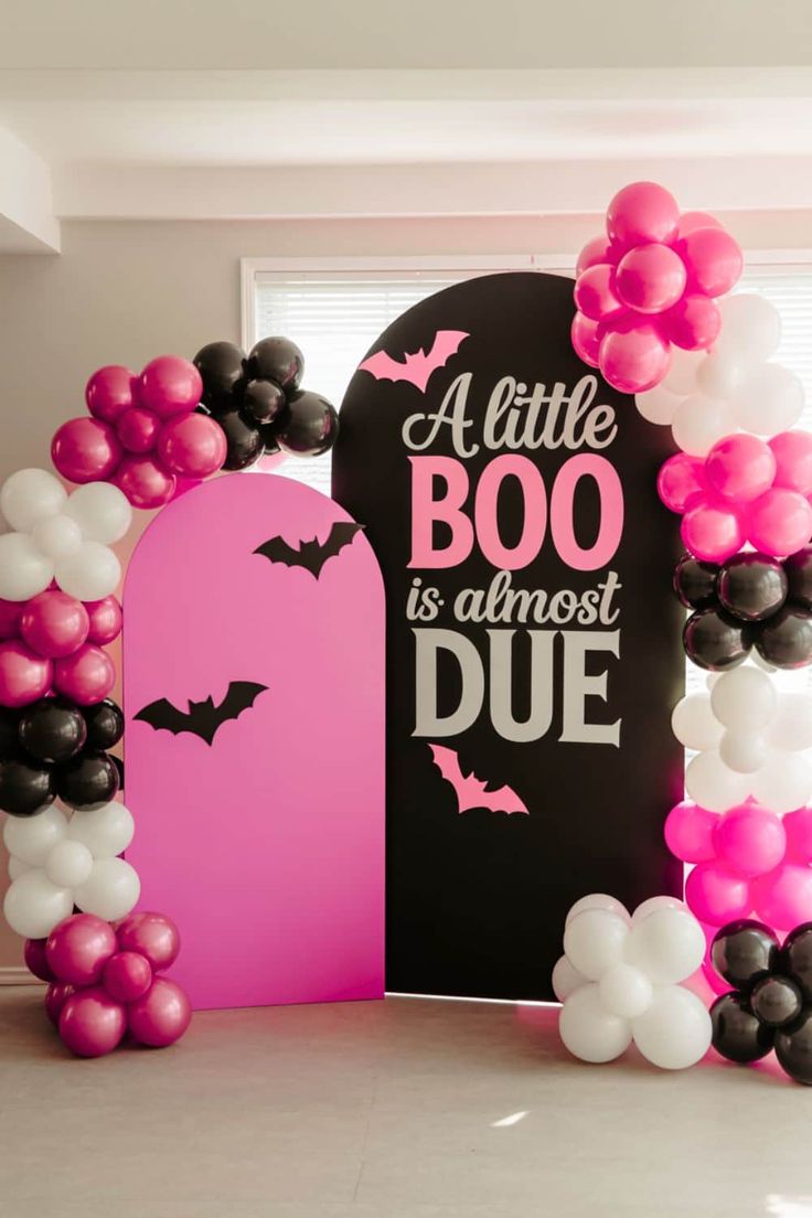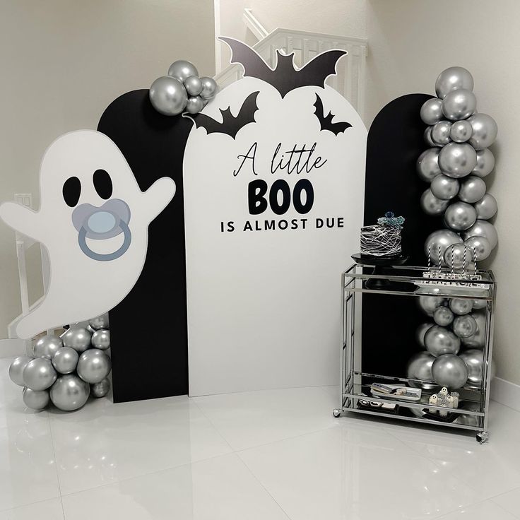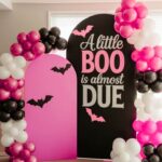 Set the tone with cloud-like balloon installations, playful signage (“Too Cute to Spook”), and layered vintage mirrors. It’s Halloween, but filtered through a storybook lens. Great for Halloween Baby Shower For Girl concepts and Adams Family Baby Shower Ideas.