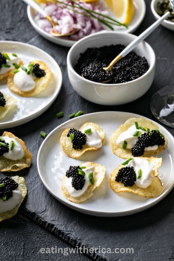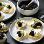 - Caviar-topped potato chips – crisp, golden chips layered with crème fraîche and caviar, paired with a chilled glass of La Marca Luminore. Elegant, bite-sized luxury that requires almost no effort.