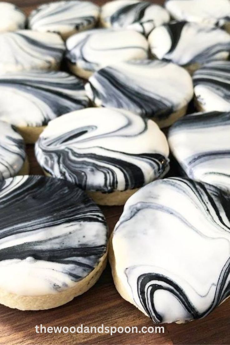 - Marbled sugar cookies – shaped like moons or bats, but iced in soft grays, ivory, and black, a modern take on something classic.