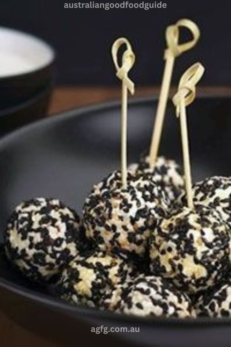 - Spicy goat cheese balls in sesame seeds – smooth and creamy with a gentle kick, rolled in a mix of black and white sesame for texture and contrast. They’re small, elegant, and made to be savored slowly, a quiet showstopper on any appetizer tray.